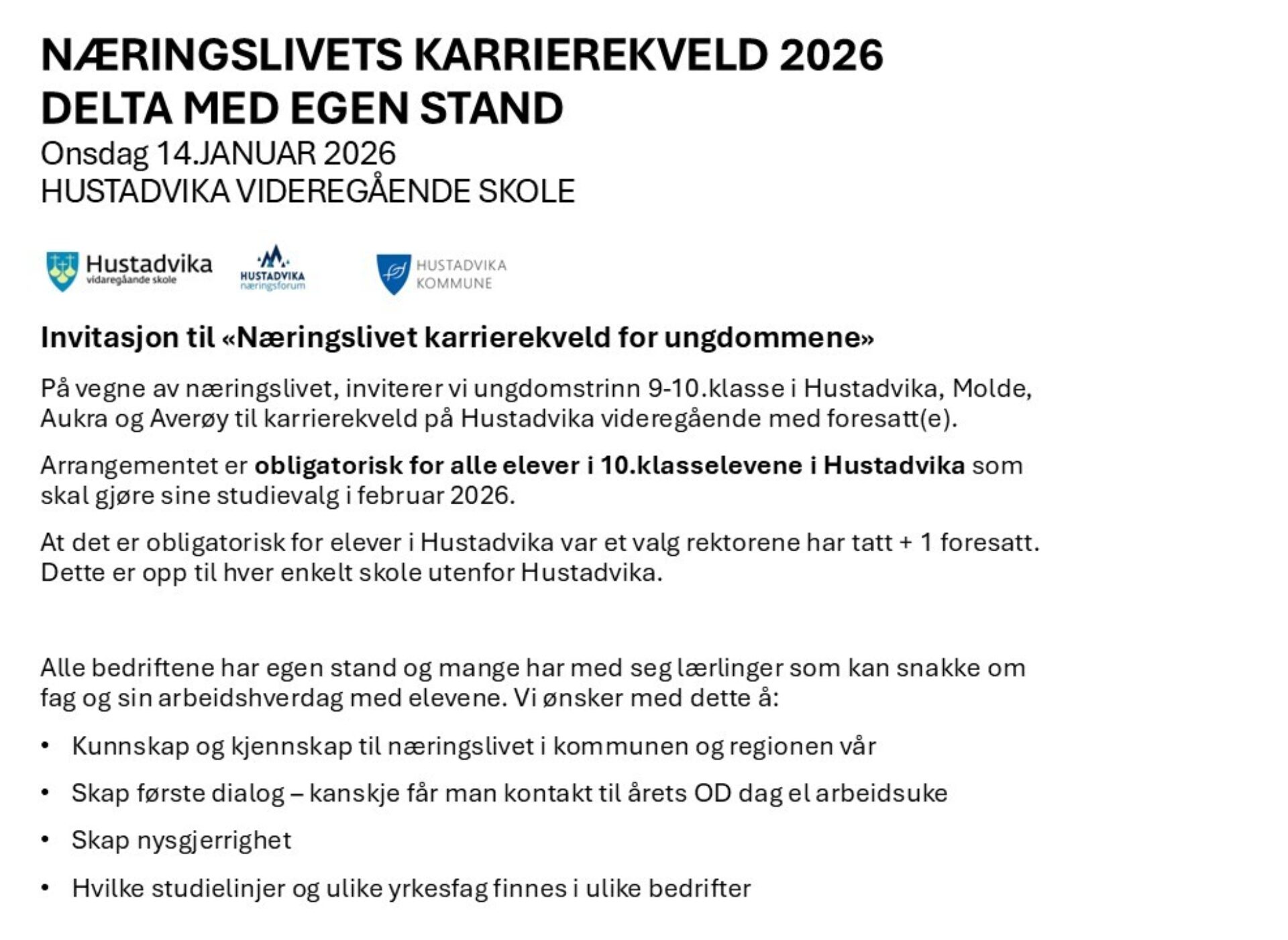 Næringslivets karrierekveld for ungdommene i Hustadvika og omegn 2026