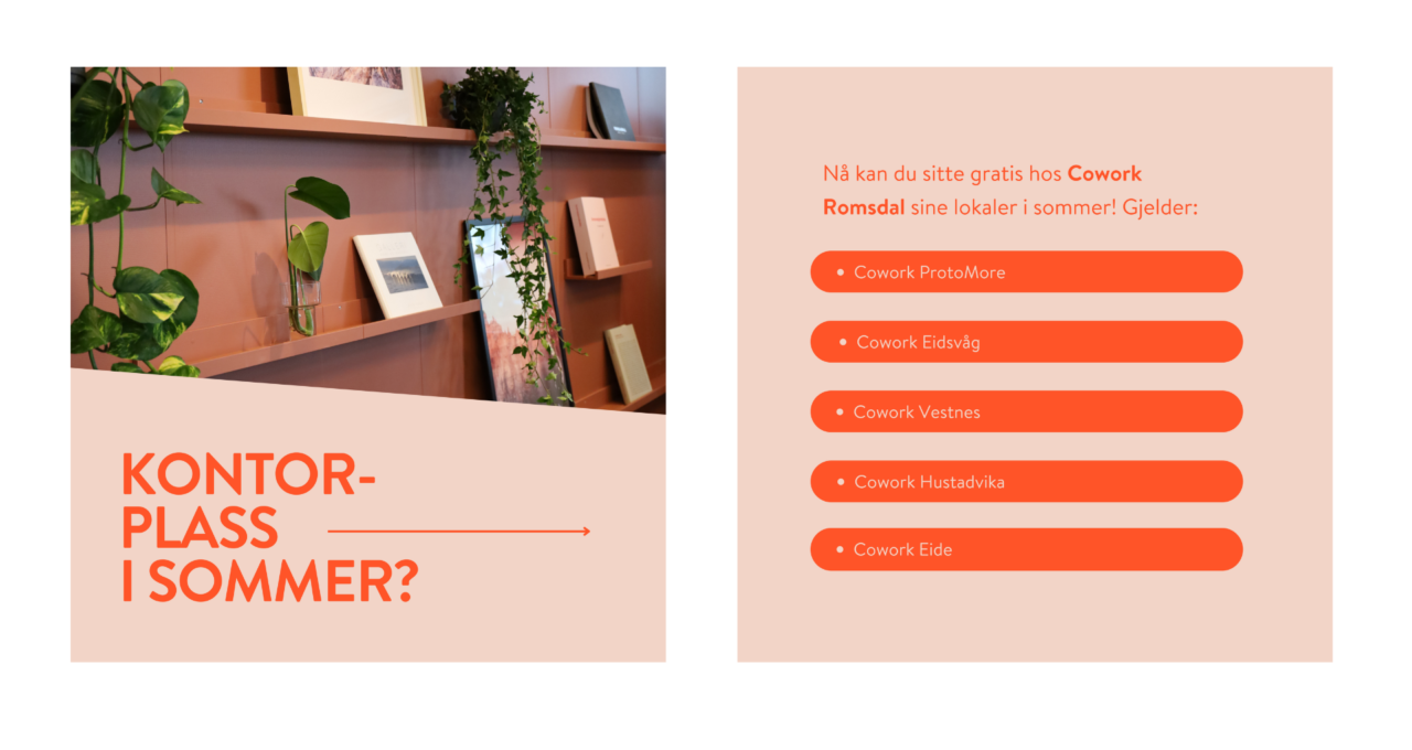 Dette er plassen om du har behov for avveksling fra hjemmekontoret, du er på jobbreise i Hustadvika, unngå pendling, du er på bedriftsbesøk eller er gründer som trenger et sted å sitte i en oppstartsfase.